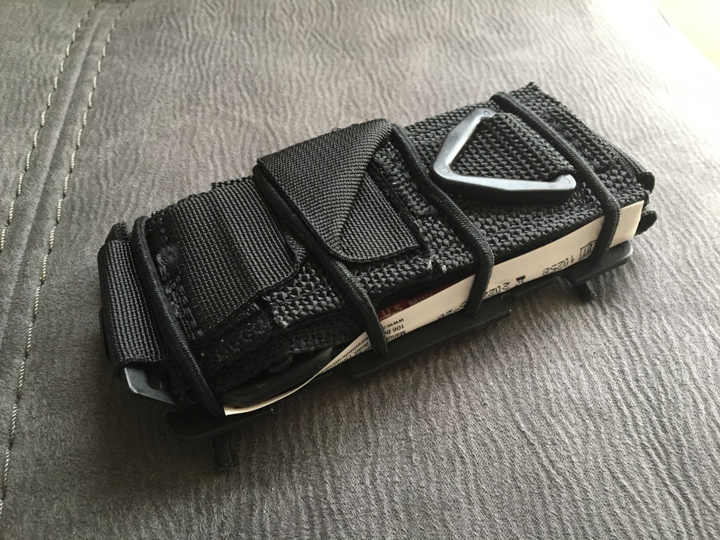 The Flatpack is little more than a thin slice of polymer with shock cord to tether a folded tourniquet. However, in this simplicity is incredible functionality. The Flatpack comes with belt loops and it works great as a means of carrying the tourniquet on the belt. However, I struggle to carry anything outside the waistband on the belt as I simply can’t seem to conceal it. Even the Flatpack, which does indeed lay flat, is too conspicuous under my un-tucked shirt. But the belt loops are removable, and the Flatpack remains the best way to carry the tourniquet even in a pocket, as I do.