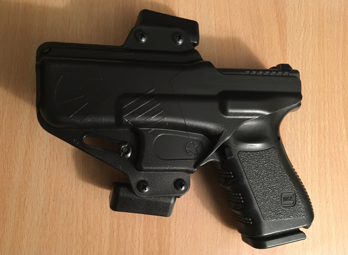 The holster I have used for this task for quite some time now is the Raven Concealment Perun holster. I most often carry a Glock 26 AIWB, but I use a Glock 19 predominantly for OWB carry. The Perun is designed with a rather minimalist footprint which I prefer compared to the ever-common kydex slab pancake holsters that are widely produced and used by many manufacturers.