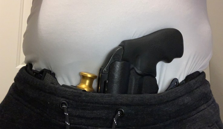 Now, first a disclaimer: when going to public places, especially when with family, I wear jeans or some other pants with an actual belt on which I wear my main carry gun, a reload, and all my other carry gear. So, to be clear, I am not walking around the mall with my family with sweatpants on (not that there is anything wrong with that). But, around the neighborhood, walking the dog, taking the kids to the park, even running errands close to home and by myself, I am likely wearing sweatpants or draw-string shorts, and strapped the whole time.
