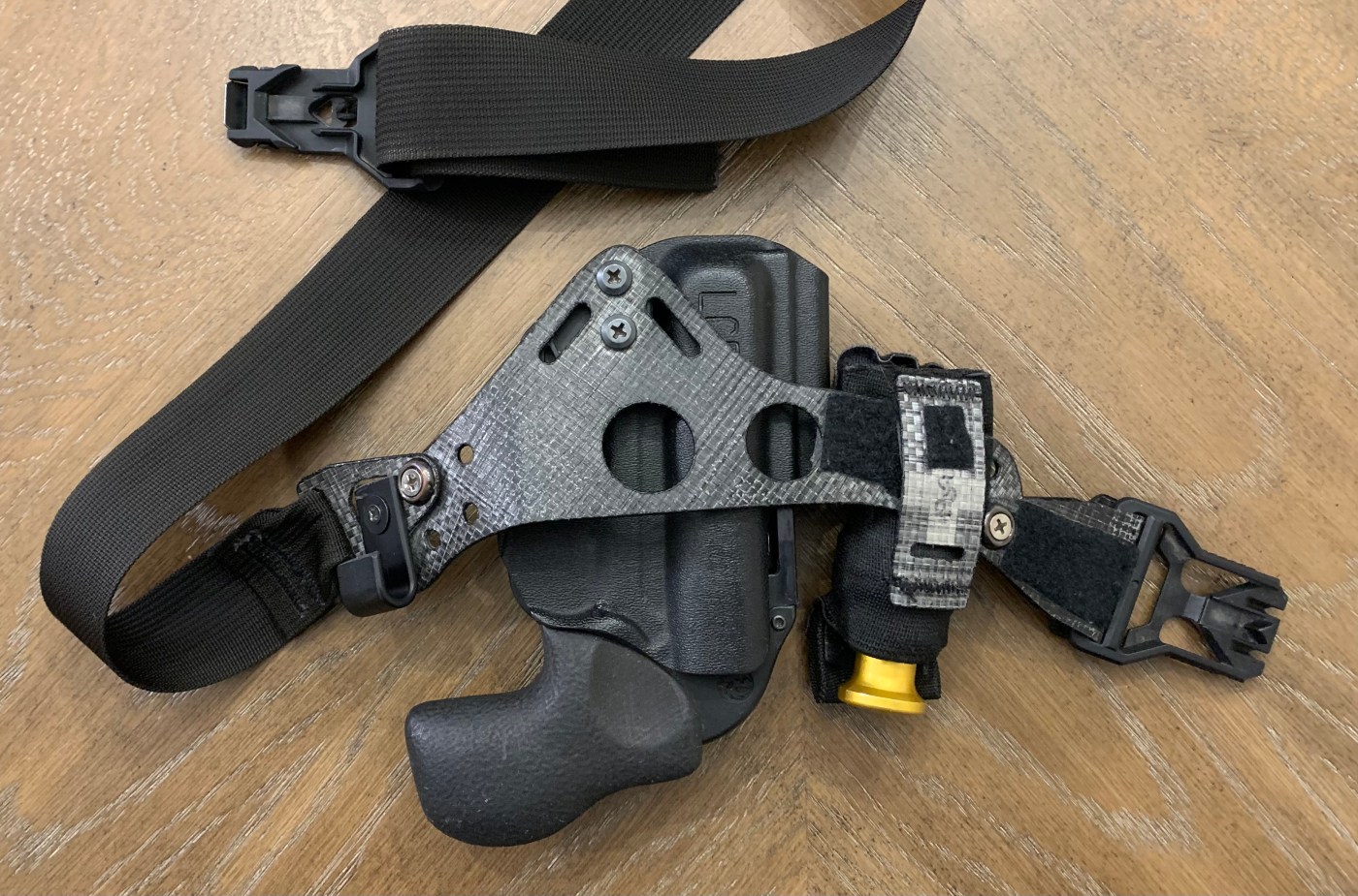 I keep a speedloader next to the revolver, also riding on the Enigma, and due to the design of the Enigma faceplate, it adds no bulk at all. Historically, I would carry speed strips as speedloaders were bulky in the waistband or in a pocket, thus defeating the role of the very concealable small revolver. With the Enigma, the speedloader adds no bulk, and proves a significantly faster reload than do speed strips. The Enigma rig, with the revolver and speedloader, is extremely fast to put on and is comfortable enough to wear around the clock.